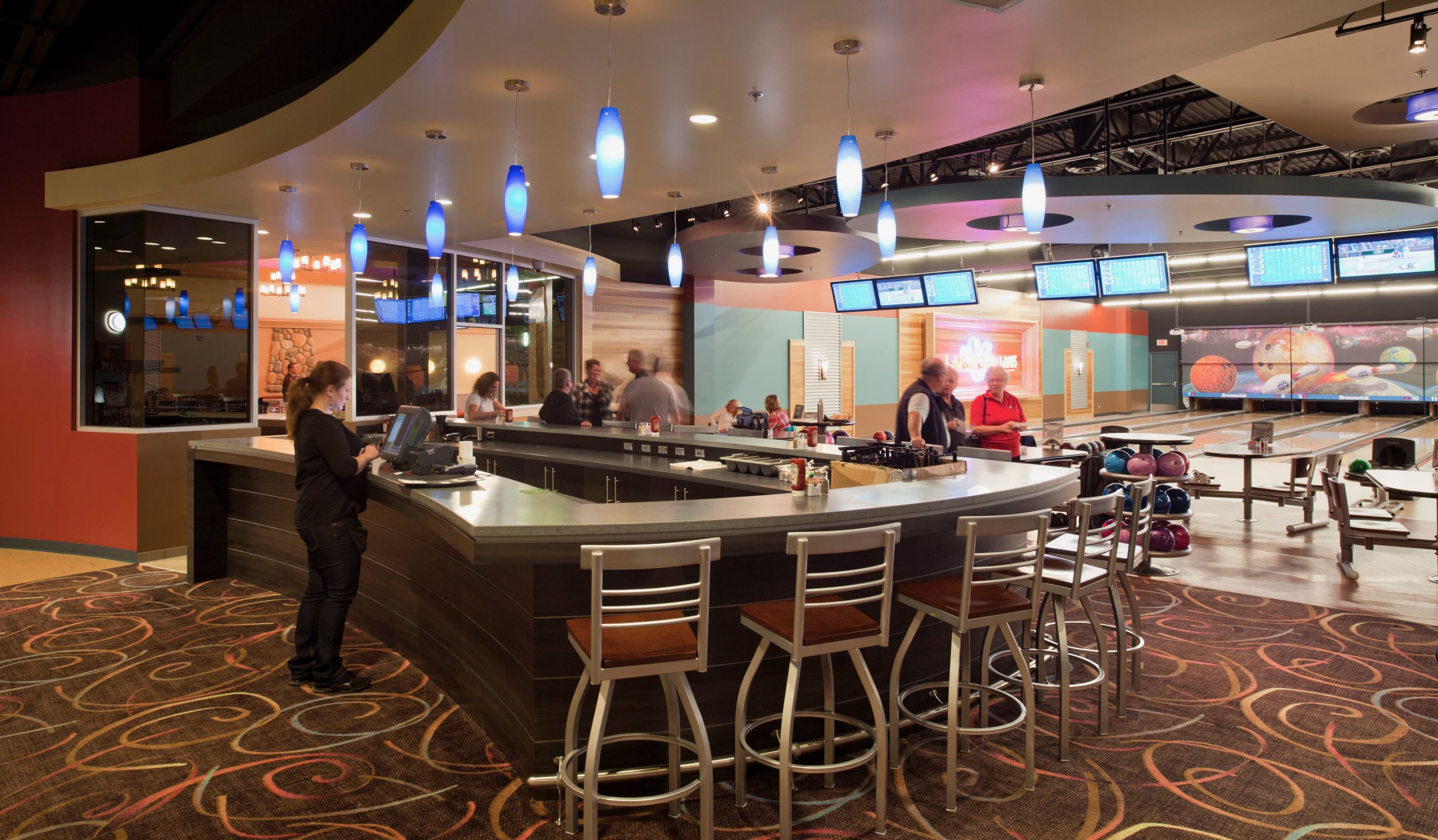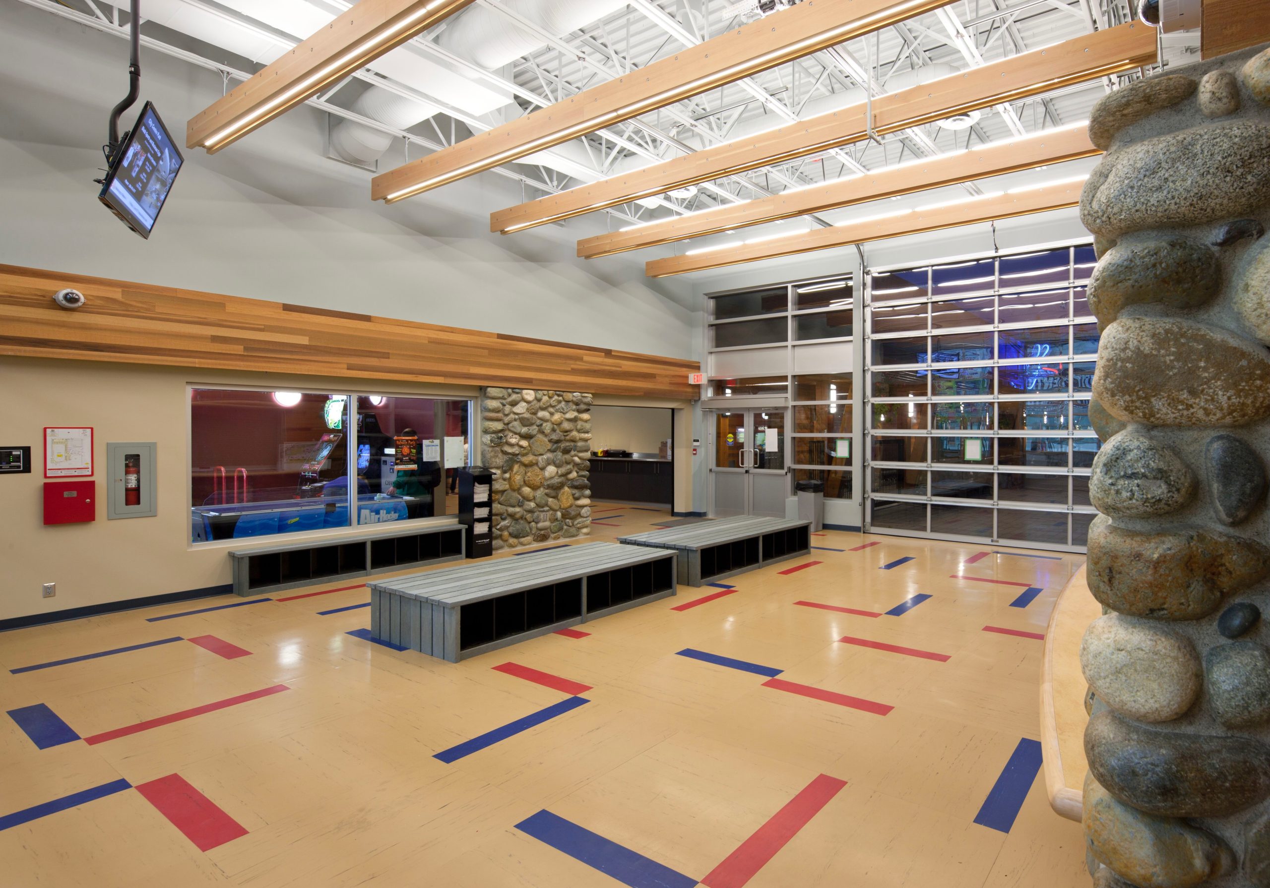 The NHL arena, bowling facility, and restaurant/bar—were fully integrated under one roof to create a true multi-use family destination. It quickly became known as “the most family-friendly rink on the island,” reflecting both its design and community appeal. The project also stood out for its year-round versatility, with spaces that could support both ice-based and dry floor activities, maximizing use across seasons. Adding to its uniqueness was the extraordinary demand for the bowling facility, which at completion was already booked nearly two years in advance for bowling use and public play.